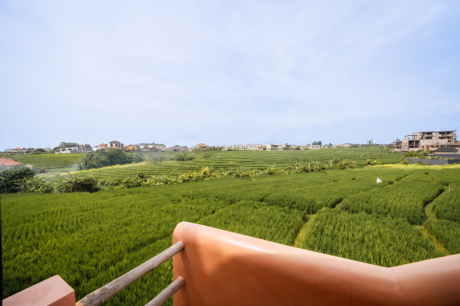 Upstairs, the second bedroom serves as a peaceful retreat, complete with pool views and its own private ensuite bathroom. Continue up to the rooftop, where expansive views of the rice fields offer a serene setting for morning coffee, sunset moments, or quiet evenings under the open sky.