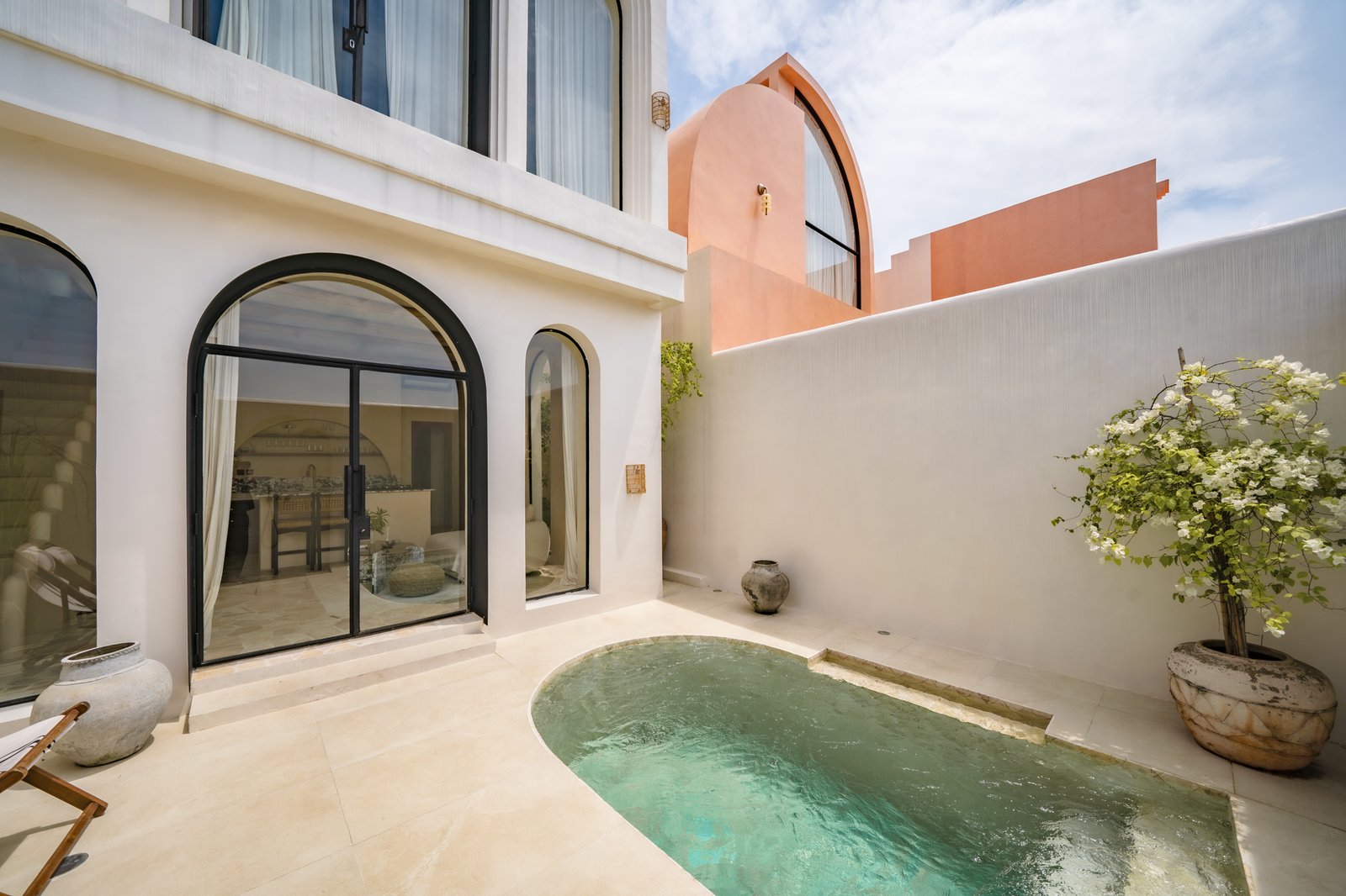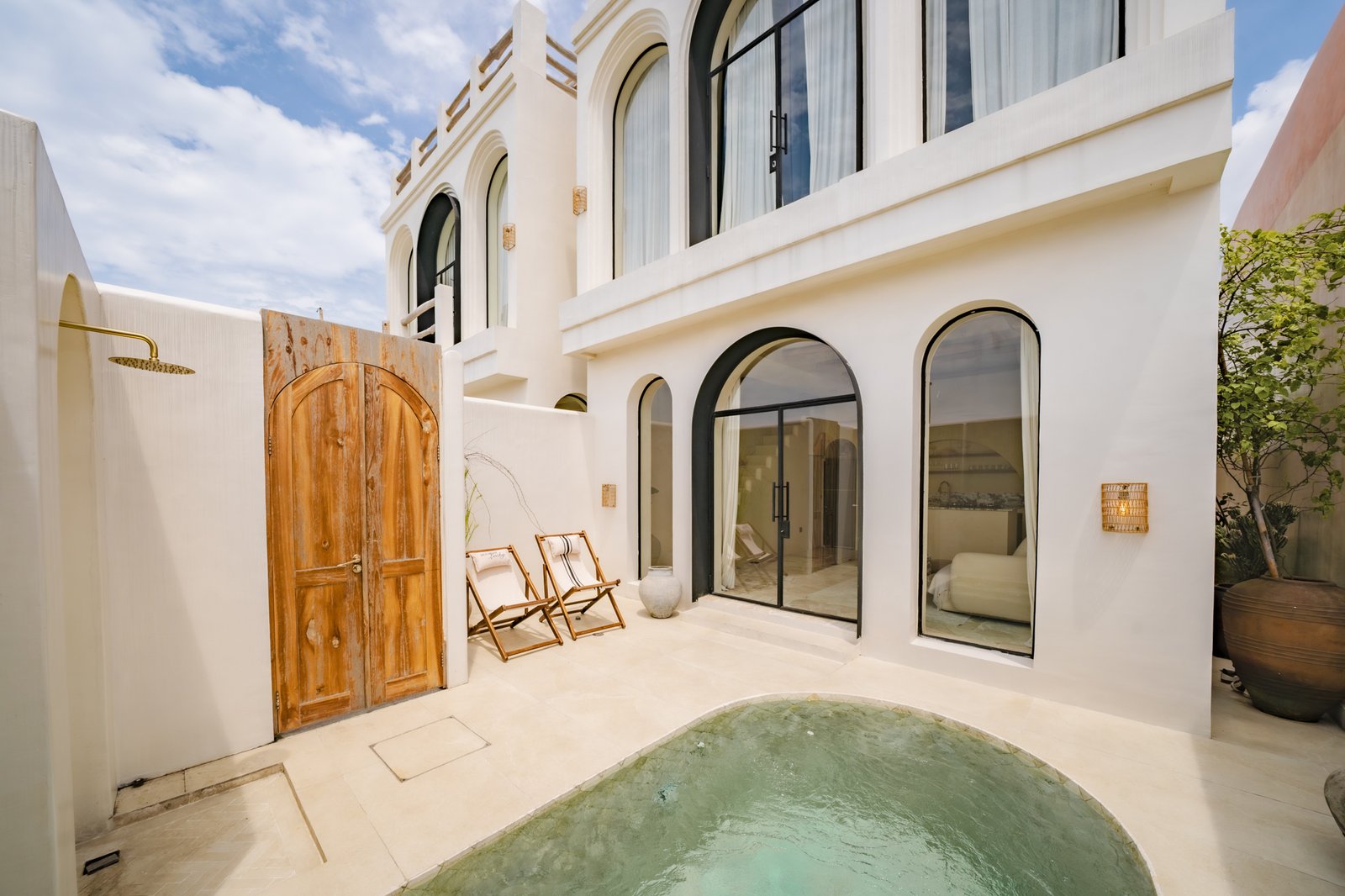 Please note: House of Lucky is a boutique villa complex in Seseh with three villas: one 3-bedroom villa and two 2-bedroom villas, all designed in a modern Mediterranean style. The 3-bedroom villa can be rented by the room, offering private bedrooms with ensuite bathrooms and shared facilities like the pool, kitchen, dining area, lounge, and rooftop. The two 2-bedroom villas are available for exclusive rental, providing full privacy for couples, families, or small groups. This setup allows guests to choose between a private or shared-villa experience while being conveniently located near the beach, cafés, and attractions in Seseh.